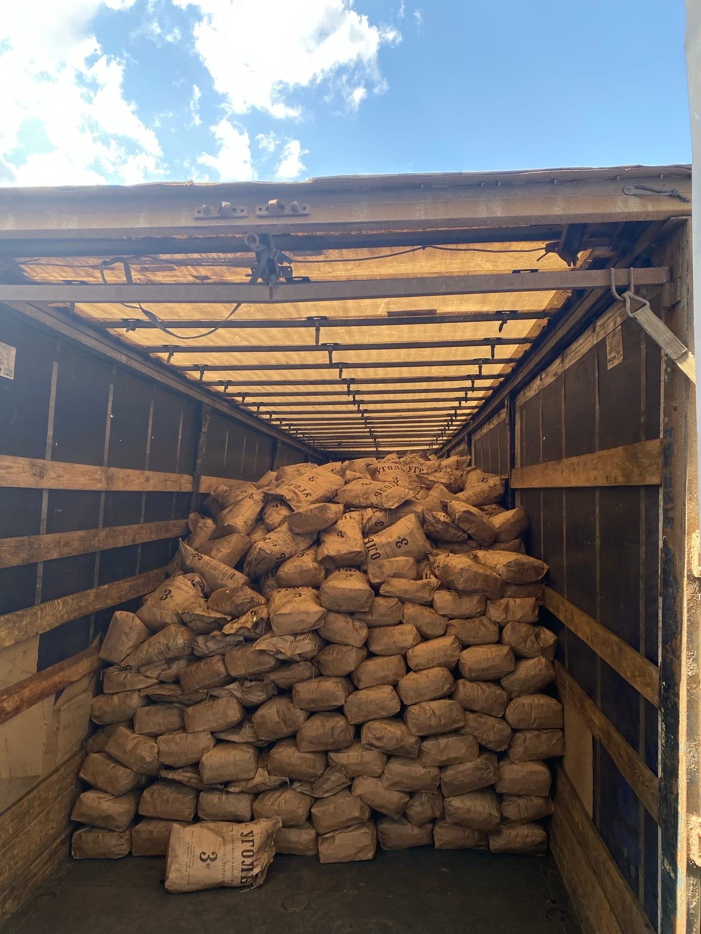 Очередной заказ на выгрузку угля в мешках. Для наших двух грузчиков хватило 1,5 часа, чтобы разгрузить данное количество угля в мешках на склад. Правда отмывались они потом долго.